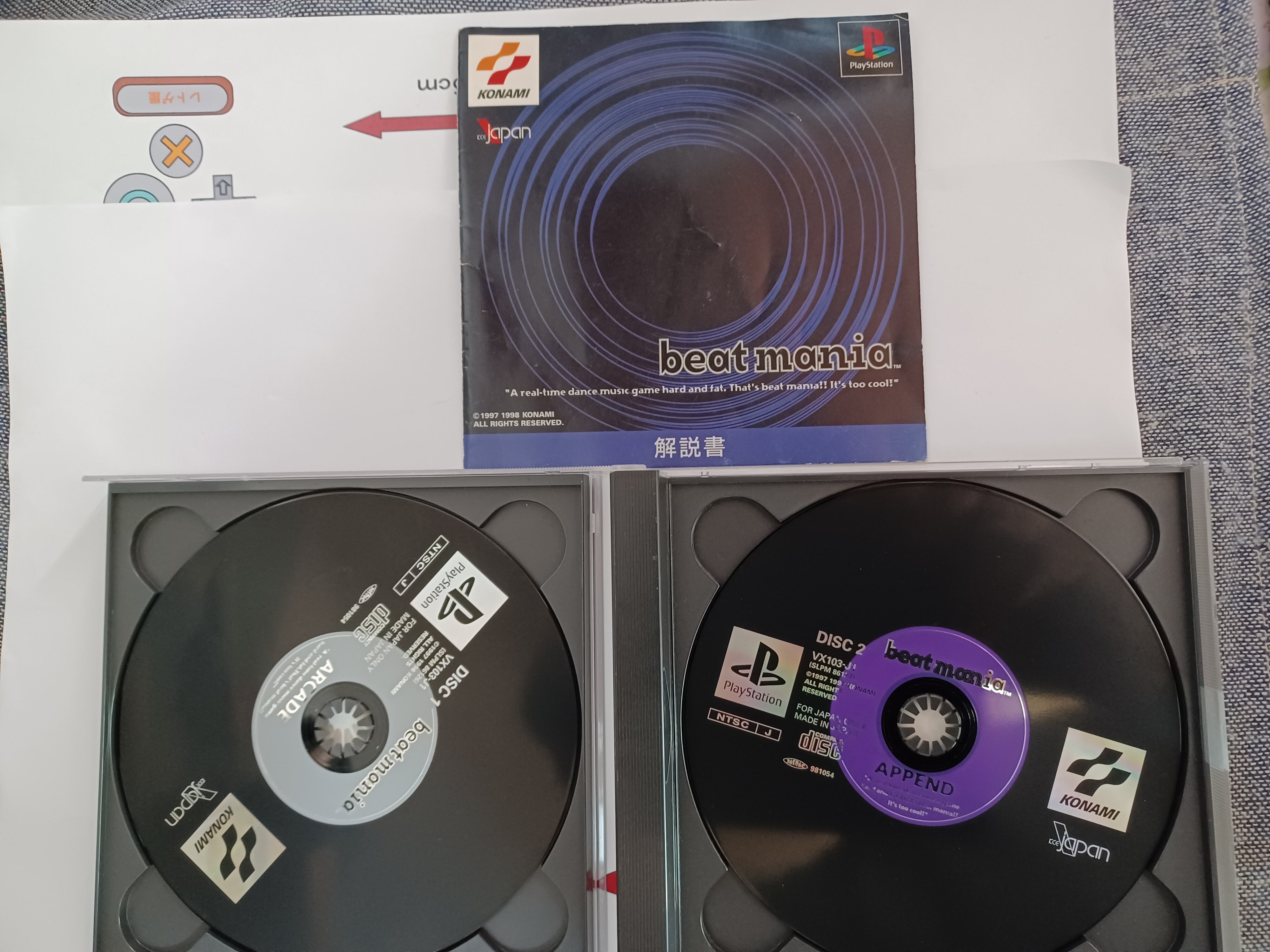 PSソフト「ビートマニア」には、アーケード版「beat mania 2ndMIX」の全19曲と、プレイステーションオリジナル全8曲が収録された「APPEND」ディスクが。