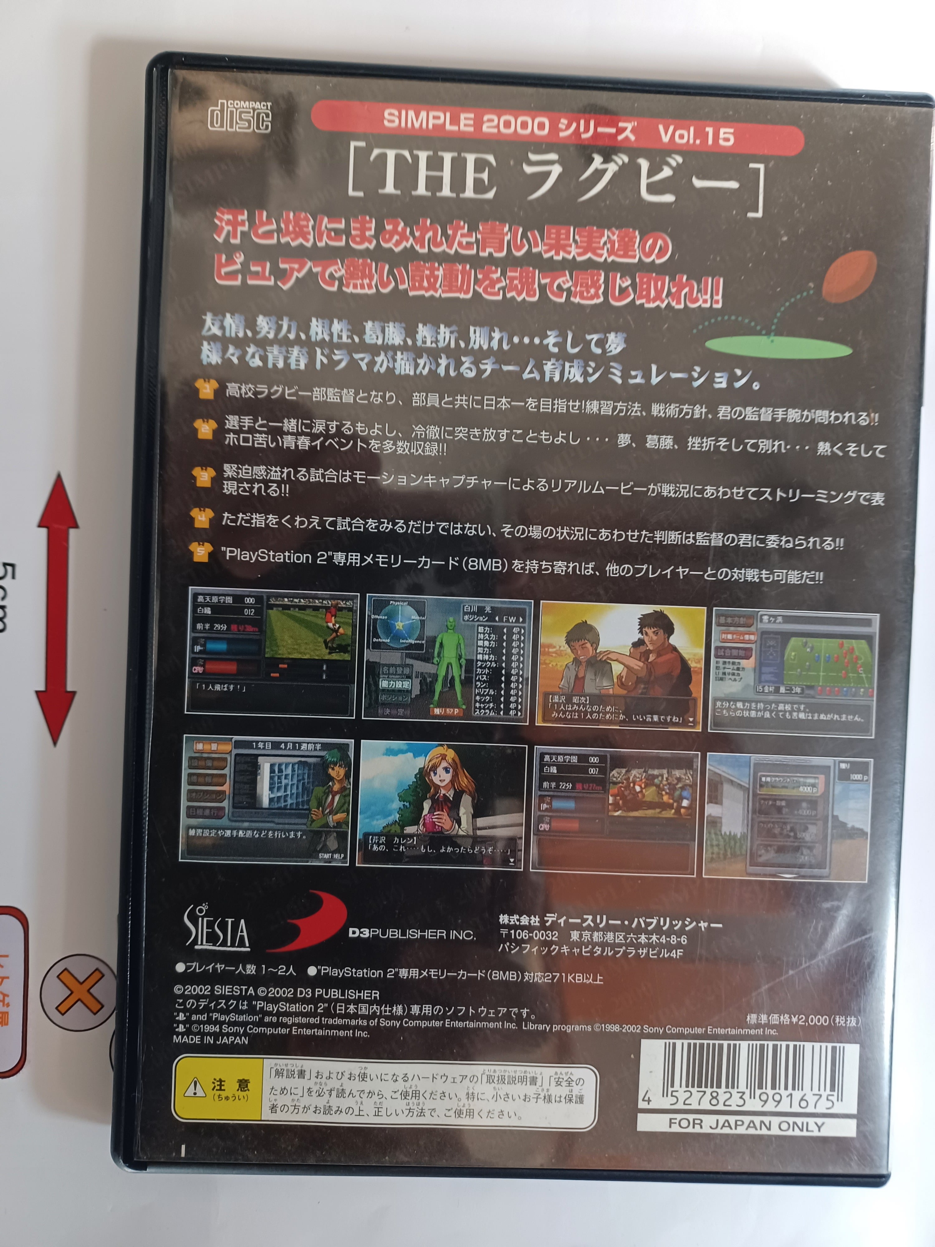 中古PS2ソフト「SIMPLE2000シリーズVol.15 THE ラグビー」(箱、説明書あり)