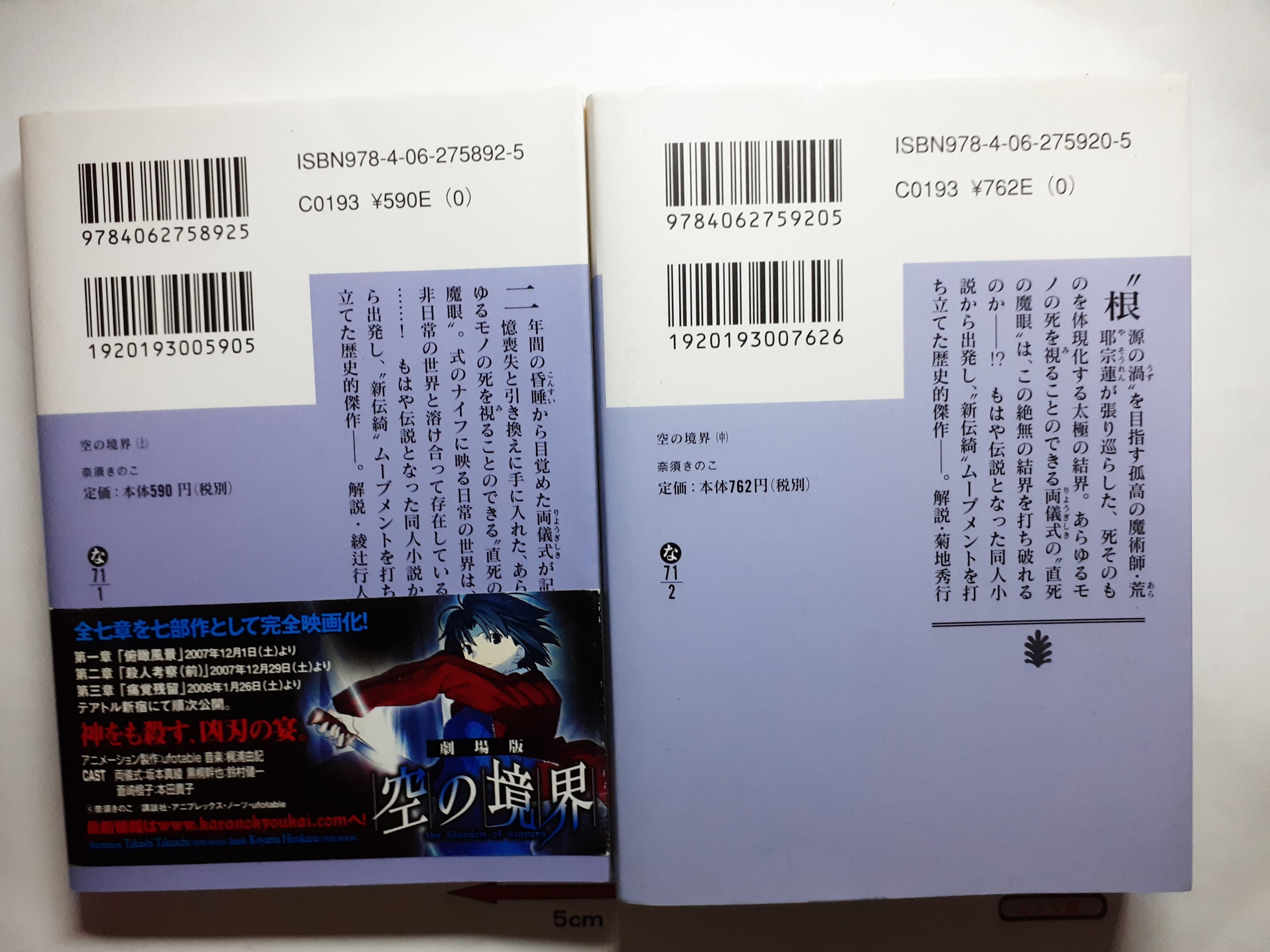 小説「空の境界(からのきょうかい)」(上)と(中)の2巻セット(奈須きのこ著 講談社文庫)(中古)